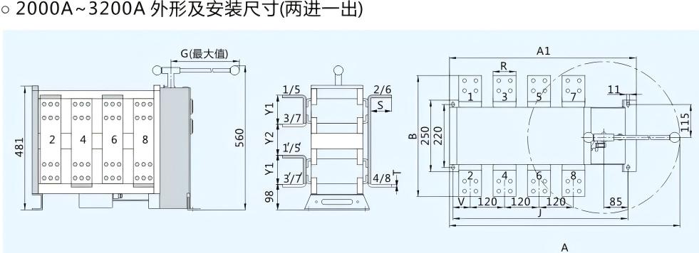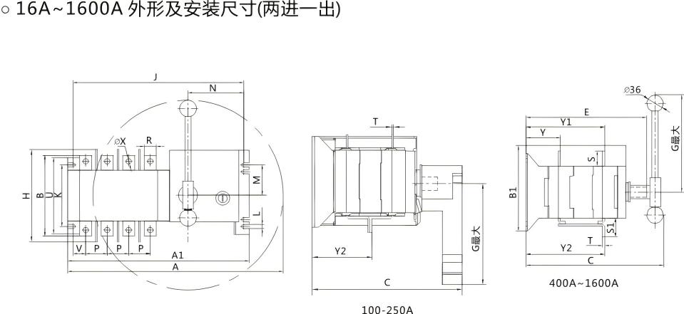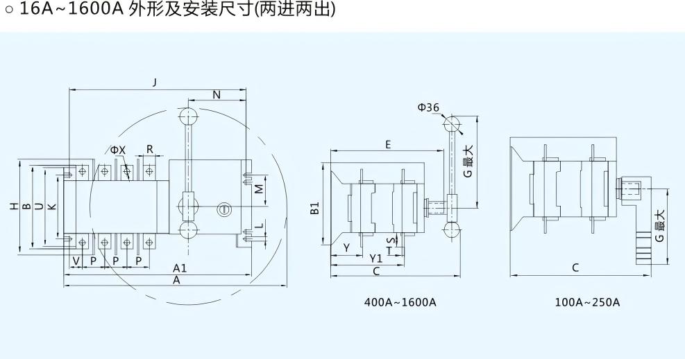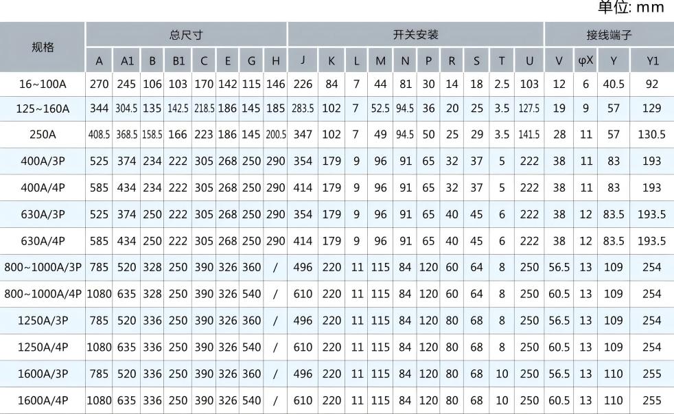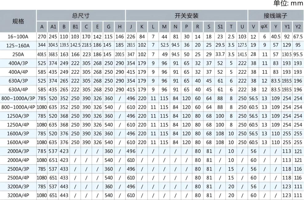 額定工作電壓AC440V,約定發(fā)熱電流:100A、250A、630A、1600A、3200A。有三級(jí)、四級(jí)之分。