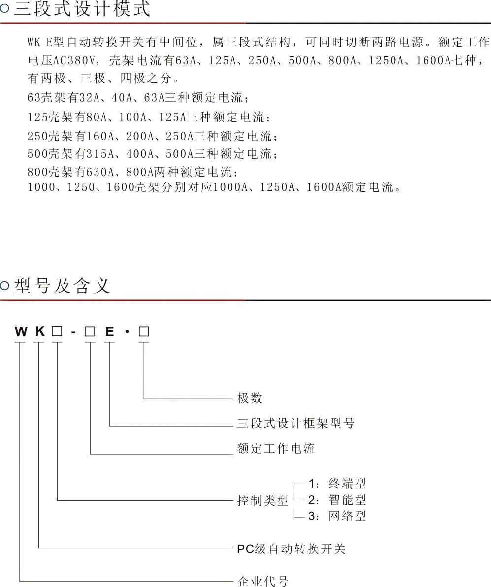 WK-E型自動轉(zhuǎn)換開關(guān)是采用單線圈驅(qū)動雙刀單投的操作機構(gòu),它帶中間位,不帶短路及過載保護。