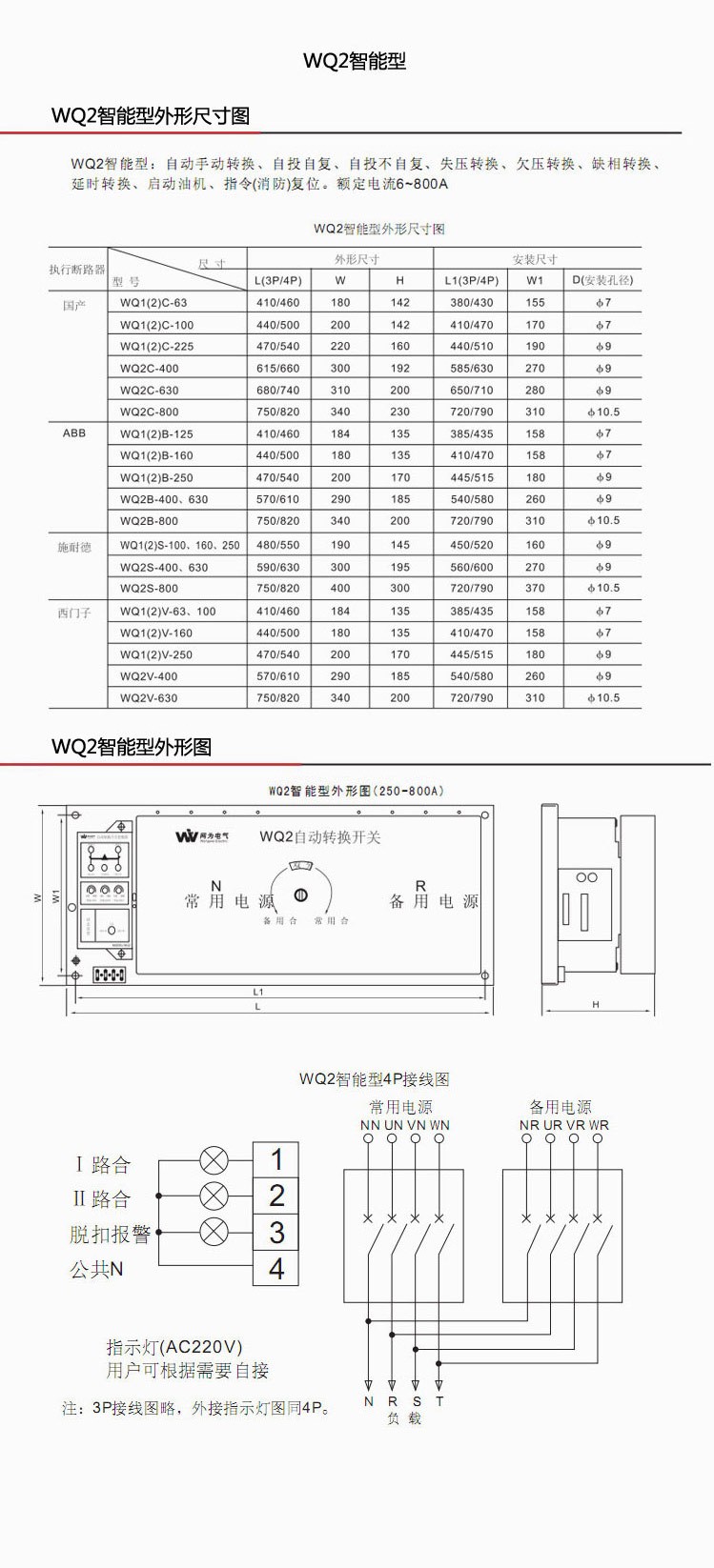 5、WQ2智能型控制器主要功能:自動(dòng)手動(dòng)轉(zhuǎn)換、自投自復(fù)、自投不自復(fù)、失壓轉(zhuǎn)換、欠壓轉(zhuǎn)換、缺相轉(zhuǎn)換、延時(shí)轉(zhuǎn)換、啟動(dòng)油機(jī)、指令(消防)復(fù)位,額定電流6~800A。